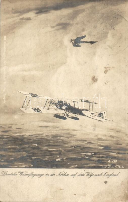 Deutsche Wasserflugzeuge in der Nordsee, auf dem Wege nach England / K.u.K. Kriegsmarine, German seaplane. "K.u.K. Seeflugstation Pola" + "1915 K.u.K. Marinefeldpostamt Pola" (fl)