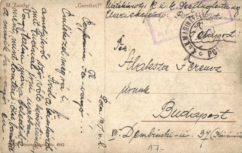 Leírás: Gerettet! / K.u.K. Kriegsmarine seaplane with mariner. W.S.S.B. Meistergalerie No. 4842. "K.u.K. Seeflugstation Pola" + "1917 K.u.K. Marinefeldpostamt Pola" s: Zander (EK)