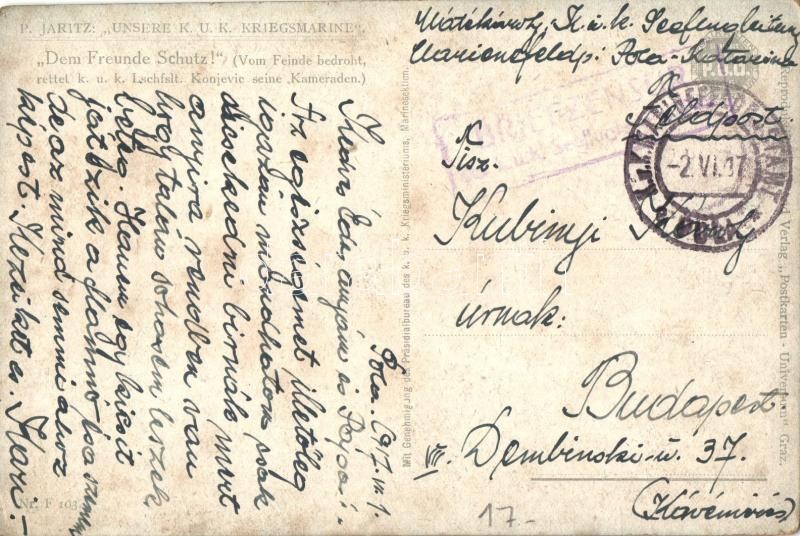 Leírás: Unsere K.u.K. Kriegsmarine. Dem Freunde Schutz! / K.u.K. Kriegsmarine seaplane. "K.u.K. Seeflugstation Pola" + "1917 K.u.K. Marinefeldpostamt Pola" (EK)