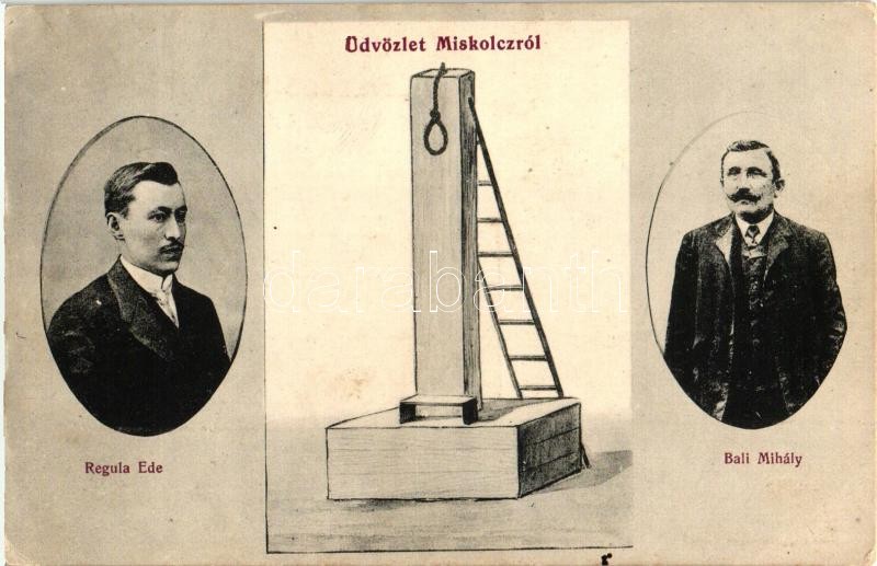 Miskolc, Üdvözlőlap Regula Ede edelényi rablógyilkosról és hóhéráról B... https://www.darabanth.com/hu/316-Gyorsarveres/316.0/Kepeslapok/Magyarorszag~1500005/Miskolc-Udvozlolap-Regula-Ede-edelenyi-rablogyilkosrol-es-hoherarol-Bali-Mihalyrol-az-~II1731940