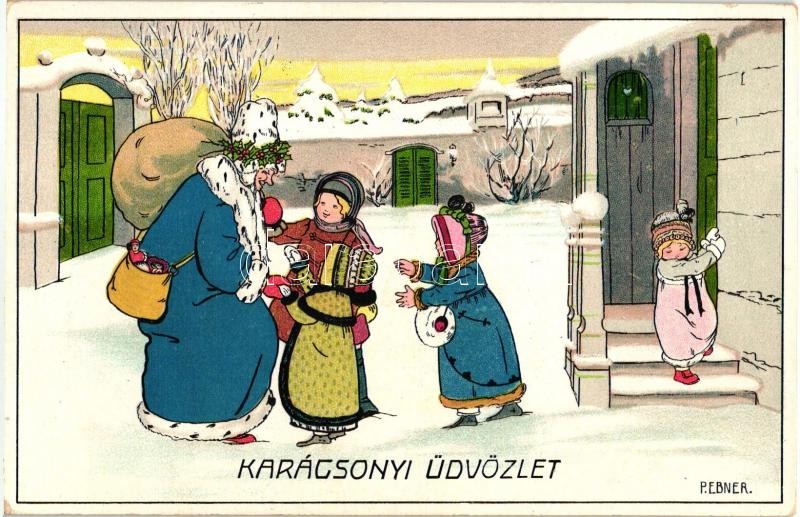 Leírás: Karácsonyi Üdvözlet / Christmas greeting art postcard. M. M. Nr. 1399. s: P. Ebner (EK)