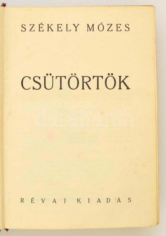 Székely Mózes: Csütörtök. Bp., 1935, Révai. Kiadói, kissé kopottas egé... https://www.darabanth.com/hu/316-Gyorsarveres/316.0/Konyvek/Konyvek-Egyeb-ritkasagok~2500016/Szekely-Mozes-Csutortok-Bp-1935-Revai-Kiadoi-kisse-kopottas-egeszvaszon-kotesben~II1733053
