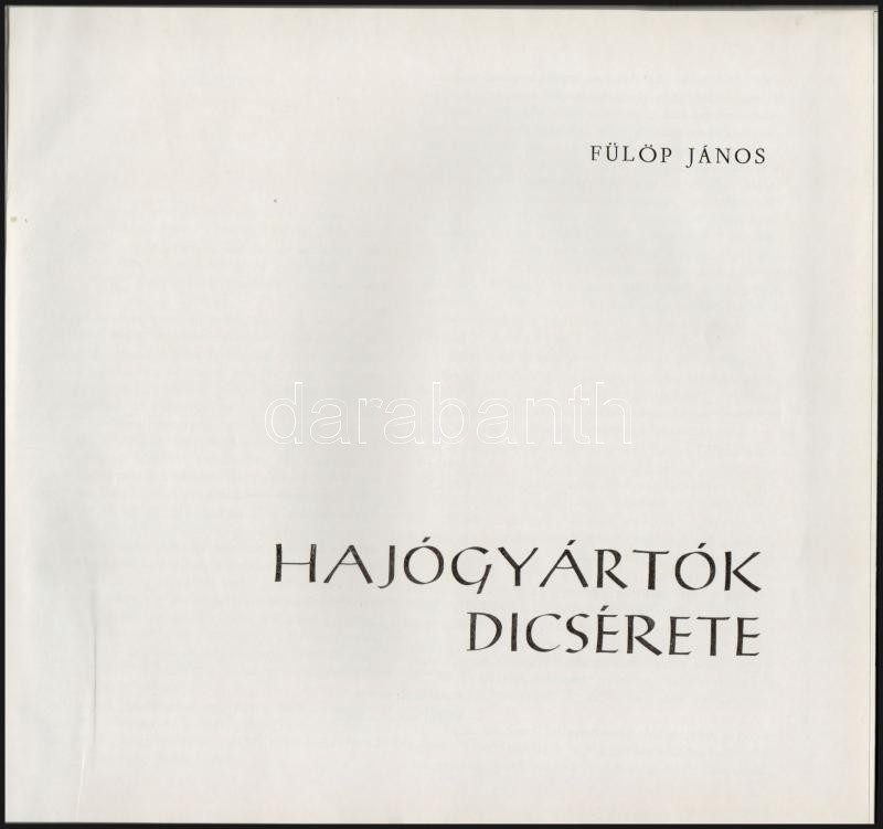 Fülöp János: Hajógyártók dicsérete. H.n., é.n., Magyar Hajó- és Darugy... https://www.darabanth.com/hu/316-Gyorsarveres/316.0/Konyvek/Konyvek-Technika~2500011/Fulop-Janos-Hajogyartok-dicserete-Hn-en-Magyar-Hajo-es-Darugyar-Keszult-3000-~II1732355