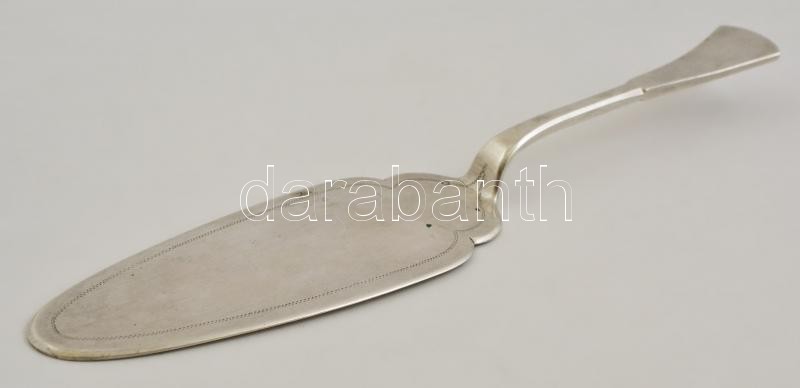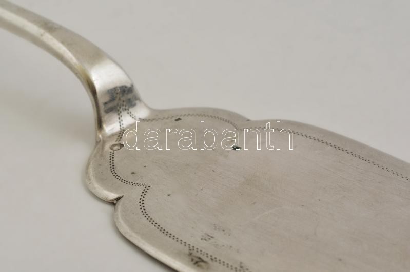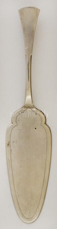 Leírás: Ezüst (Ag.) tortalapát, jelzett, mesterjeggyel (PJ), h:26 cm, nettó:170 g