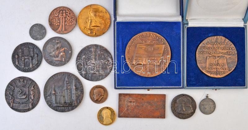 Leírás: Vegyes: 15db-os emlékérem és plakett tétel, az egyik eredeti tokkal T:2-3