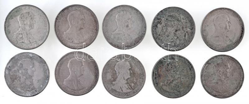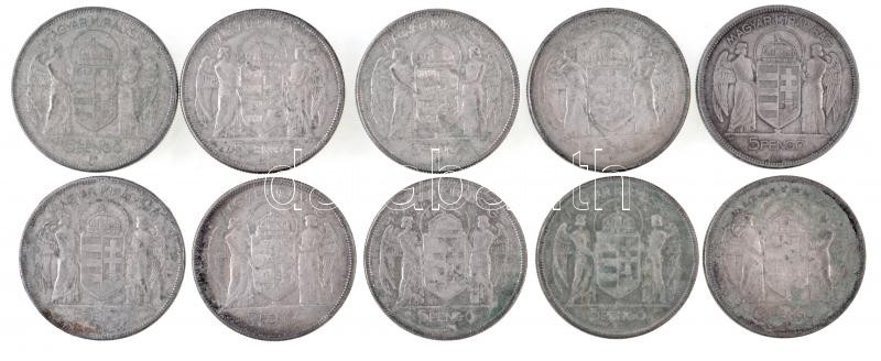 1930. 5P Ag "Horthy jobbra" (10x) T:2-,3 patina, karc