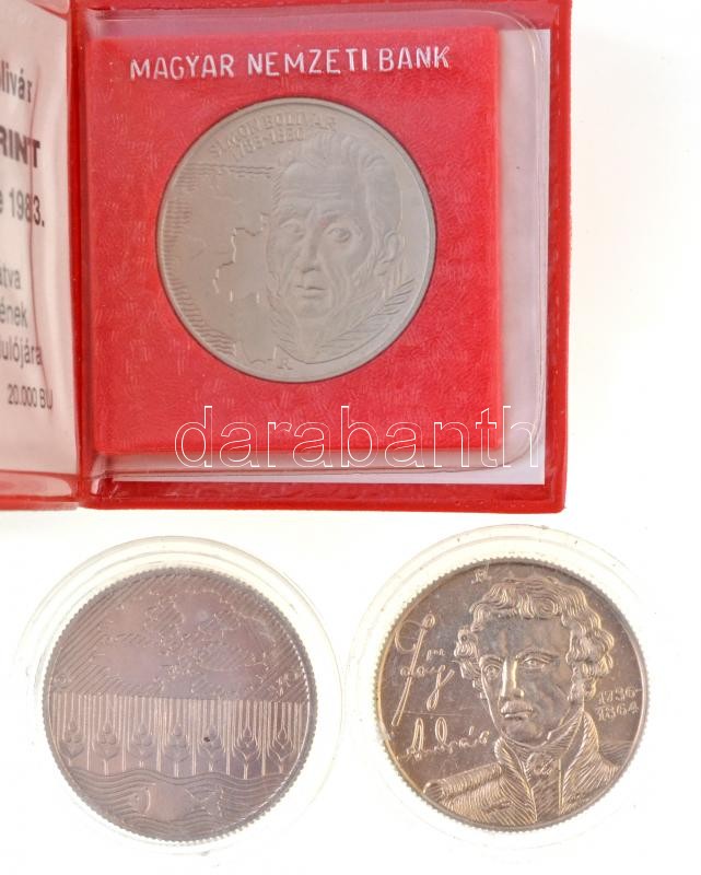 Leírás: 1983. 100Ft alpakka "Simon Bolivár" eredeti tokban tanúsítvánnyal + 1985. 100Ft alpakka "FAO - Fa, búza, hal" + 1990. 100Ft alpakka "Fáy András" T:BU