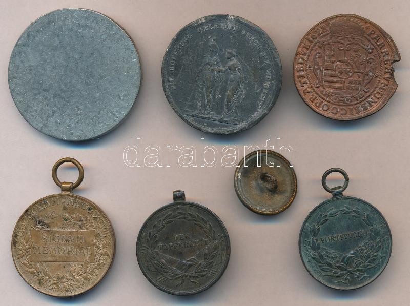 Leírás: Vegyes: 7db-os tétel benne kitüntetések és emlékérem másolatok valamint egy Honvéd egyenruha Br gombja T:vegyes