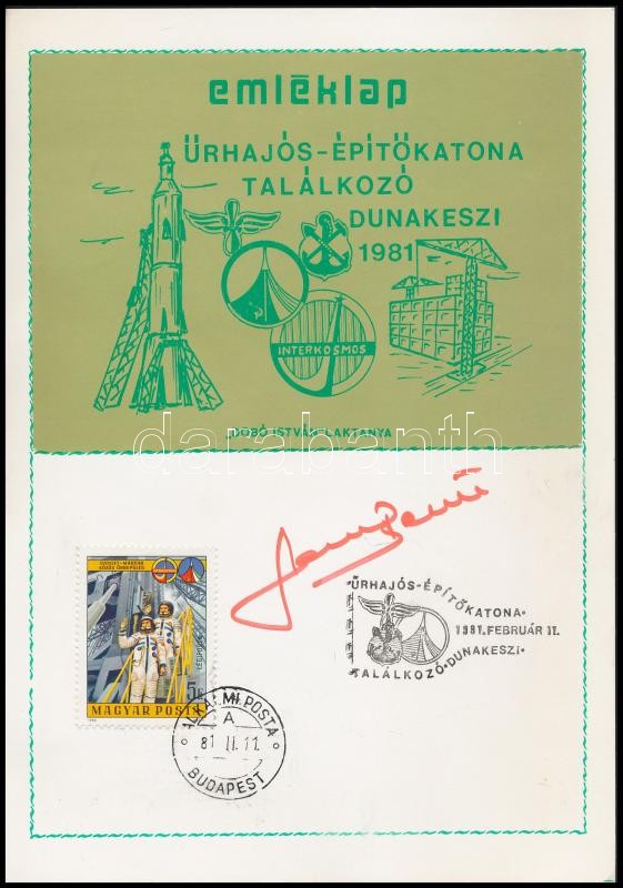 1981 Emléklap Farkas Bertalan űrhajós aláírásával / Hungarian astronau... https://www.darabanth.com/hu/317-Gyorsarveres/317.0/Festmeny-mutargy-papirregiseg-egyeb/Alairas~22/1981-Emleklap-Farkas-Bertalan-urhajos-alairasaval-Hungarian-astronaut-autograph-signature~II1743184