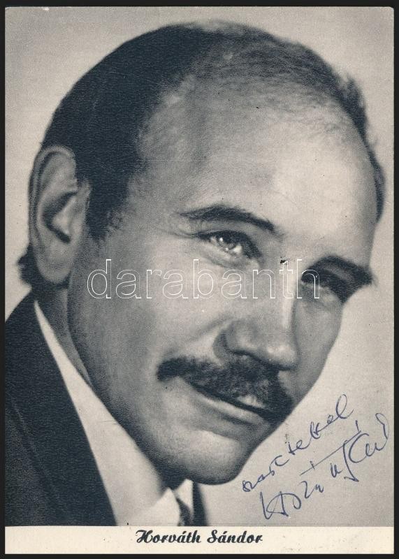 Leírás: Horváth Sándor színész aláírása őt ábrázoló fotón