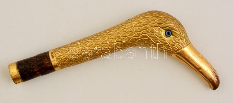 Aranyozott madárfejes bot/esernyővég, fa berakással, h: 15 cm https://www.darabanth.com/hu/317-Gyorsarveres/317.0/Festmeny-mutargy-papirregiseg-egyeb/Bolhapiac~14/Aranyozott-madarfejes-botesernyoveg-fa-berakassal-h-15-cm~II1748163