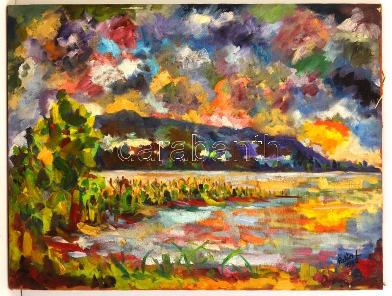 Leírás: Palócz jelzéssel: Folyópart. Olaj, vászon, 60×80 cm