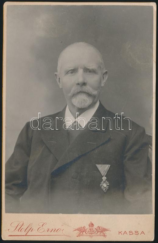 Leírás: cca 1890 Lenz János (1843-1913) a Ferenc József-rend lovagja, keméynhátú fotó Stolp Ernő kassai műterméből, 14x10 cm
