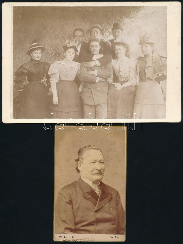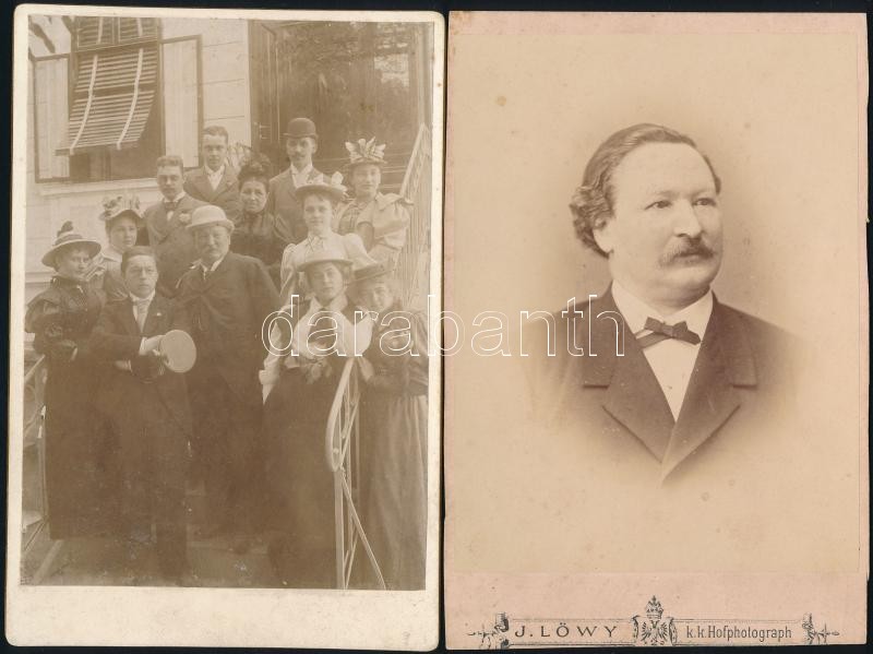 cca 1890 id. Karl Ewald (?-1901), a schwechati Dreher-gyár igazgatója és családja, 4 db keményhátú fotó bécsi műtermekből, az egyik hátulján feliratozva, különböző méretben