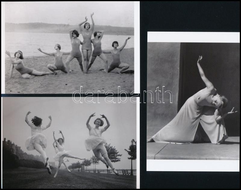 Leírás: cca 1930 Testművészek, 3 db mai nagyítás a néhai Népművelési Intézet tánctörténeti előadásának (cca 1972) illusztrációs anyagából, 10x15 cm