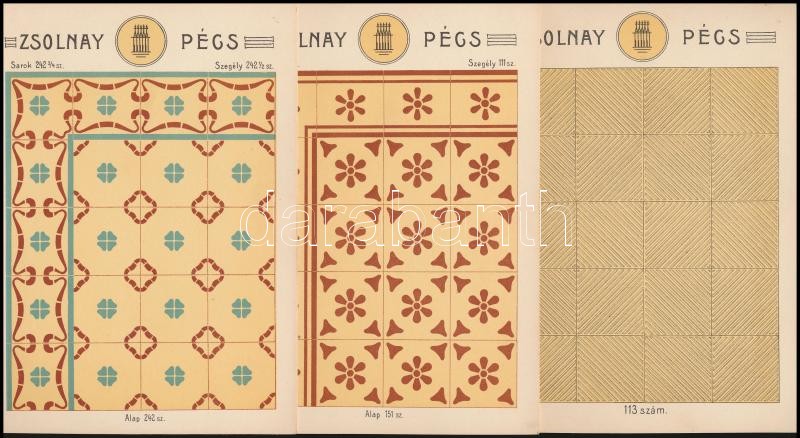 Leírás: 1904 Pécs, A Zsolnay gyár padlócsempe mintalapjai, 14 db, borítékban