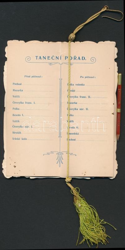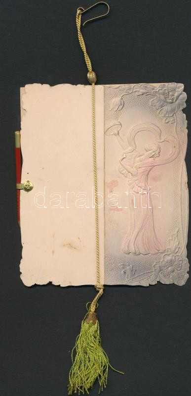 1905 A budapesti Sokol egylet szecessziós dombornyomott díszítésű használatlan táncrendje, kis ceruzával, jó állapotban // tanecni porad, Telocvicna jednota Sokol v Budapesti // embossed Art Nouveau dance-schedule 6×14 cm