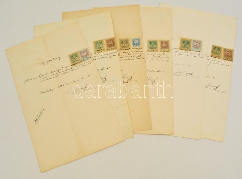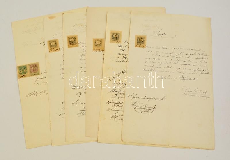 Leírás: 1903-1904 12 db okmánybélyeges irat elfogazásokkal
