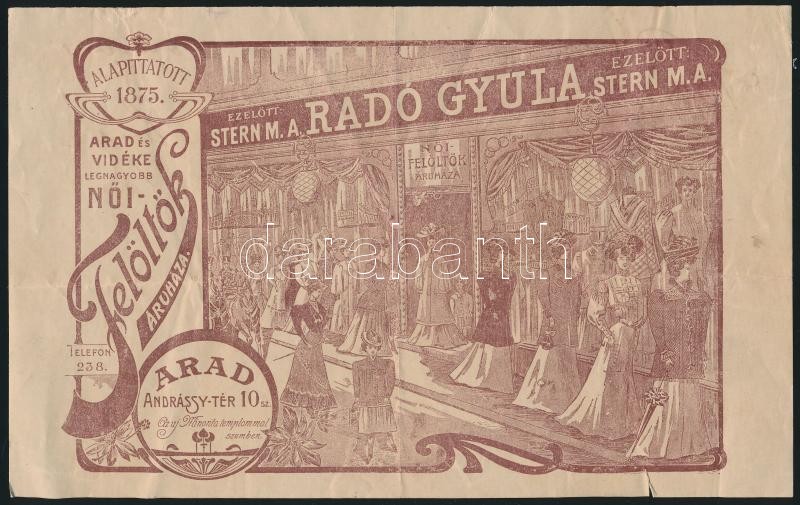 Leírás: 1910 Arad Radó Gyula díszes számla