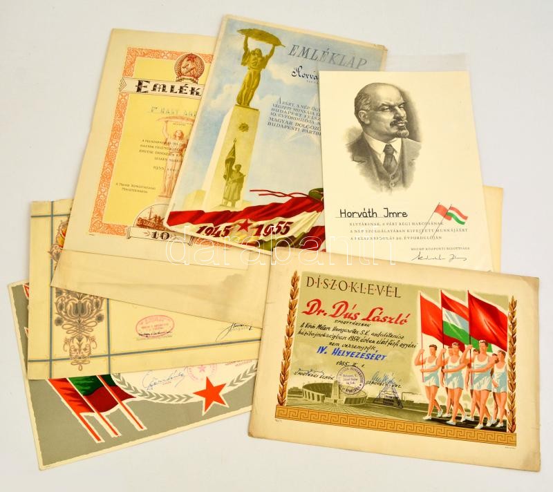 1953-1971 8 db díszoklevél https://www.darabanth.com/hu/317-Gyorsarveres/317.0/Festmeny-mutargy-papirregiseg-egyeb/Okmanyok~20/1953-1971-8-db-diszoklevel~II1746124