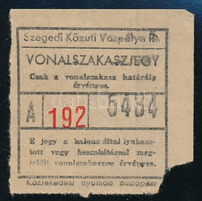 Szegedi Közúti Vaspálya Rt. vonalszakaszjegy https://www.darabanth.com/hu/317-Gyorsarveres/317.0/Festmeny-mutargy-papirregiseg-egyeb/Okmanyok~20/Szegedi-Kozuti-Vaspalya-Rt-vonalszakaszjegy~II1744107