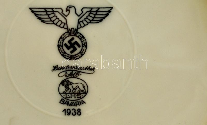 Hutschenreuther lapos tányér, fehér mázas, jelzett( Harmadik Birodalmi jelzéssel), kopott,karcos, d:23 cm / Hutschenreuther porcelain plate with German Reich sign