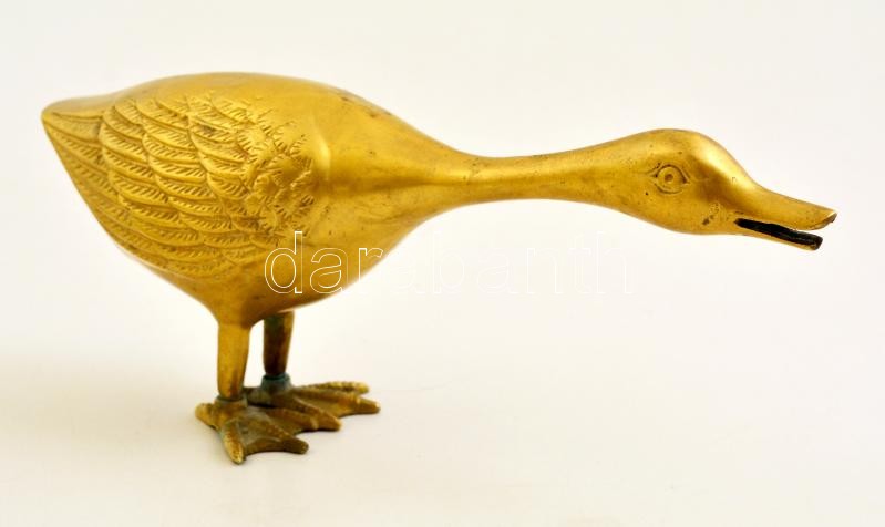 Leírás: Réz liba figura, jelzés nélkül, m:9,5 cm, h: 23 cm