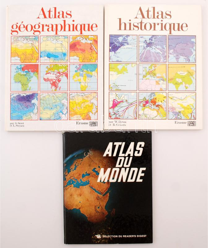 Leírás: Modern atlasz tétel: Atlas du monde, Reader's Digest, Atlas géographique, Erasme, Atlas historiquw, Erasme
