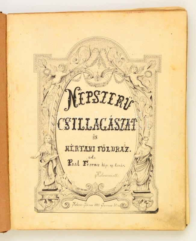 1880 "Népszerű csillagászat és mértani földrajz", Paál Ferenc (1832-1903) kolozsvári tanítóképző-intézeti igazgató-tanár című kézzel írt és rajzolt ismeretterjesztő könyve, sérült félvászon kötésben