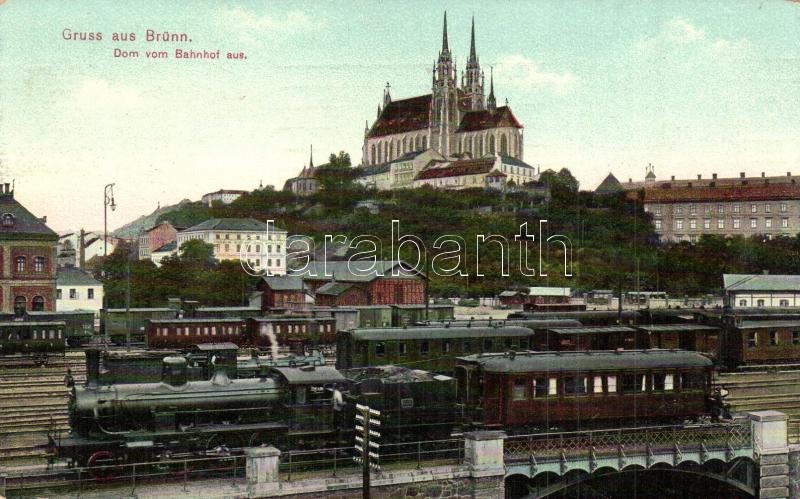 Brno, Brünn; Dom vom Bahnhof aus / railway station with locomotive and... https://www.darabanth.com/hu/317-Gyorsarveres/317.0/Kepeslapok/Cseh-Koztarsasag~1000020/Brno-Brunn-Dom-vom-Bahnhof-aus-railway-station-with-locomotive-and-trains~II1744862