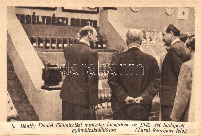 1940 Meggyesfalva, Mureseni; Erdélyrészi Hangya gyümölcskiállítás Budapesten, Dr. Bánffy Dániel földmívelési miniszter látogatása / Transylvanian fruit expo in Budapest with the Hungarian Minister of Agriculture