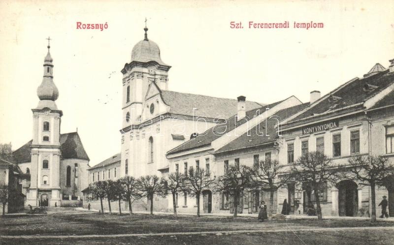 Rozsnyó, Roznava; Szent Ferencrendi templom, könyvnyomda / church, str... https://www.darabanth.com/hu/317-Gyorsarveres/317.0/Kepeslapok/Felvidek~1000006/Rozsnyo-Roznava-Szent-Ferencrendi-templom-konyvnyomda-church-streett-printing-shop~II1747969