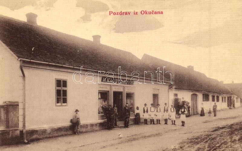 Okucani, utcakép M. Majstorovic üzletével. W.L. 927. / street view wit... https://www.darabanth.com/hu/317-Gyorsarveres/317.0/Kepeslapok/Horvatorszag-Delvidek~1000008/Okucani-utcakep-M-Majstorovic-uzletevel-WL-927-street-view-with-shop-vagott-cut~II1744448