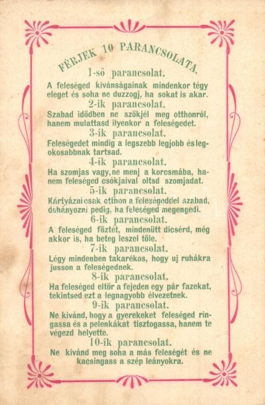 Leírás: Férjek 10 parancsolata. Bíró Albert kiadása / Ten Commandments of husbands, humour
