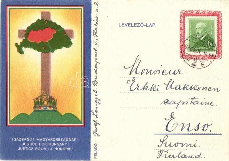 Igazságot Magyarországnak! hátoldalon Pesti Hírlap XI. Olimpiai cikke ... https://www.darabanth.com/hu/317-Gyorsarveres/317.0/Kepeslapok/Irredenta~1000063/Igazsagot-Magyarorszagnak-hatoldalon-Pesti-Hirlap-XI-Olimpiai-cikke-Hungarian-irredenta-XIt~II1735776