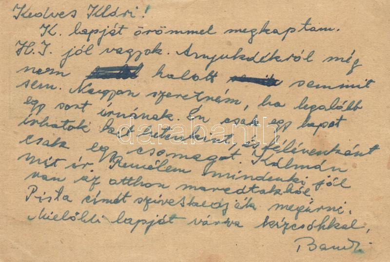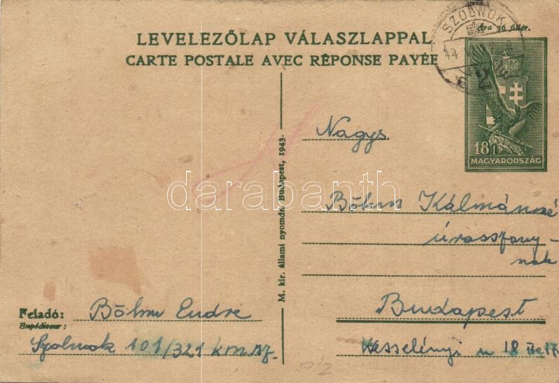 1943 Böhm Endre zsidó 101/321. KMSZ (közérdekű munkaszolgálatos) levele az szolnoki munkatáborból / WWII Letter of a Jewish labor serviceman from the labor camp of Szolnok. Judaica + 18f Ga. (EK)
