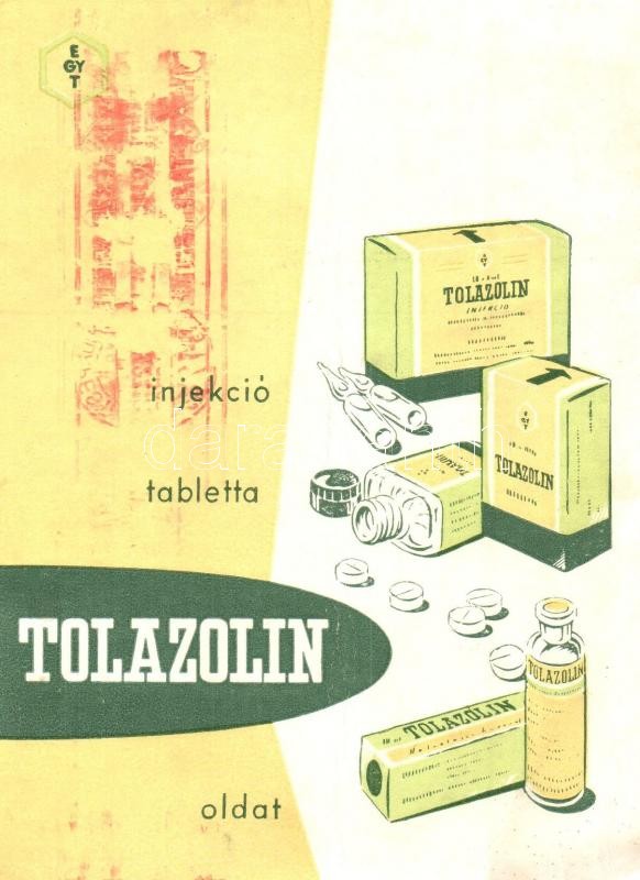 Tolazolin gyógyszer reklámlap. Egyesült Gyógyszer- és Tápszergyár / Hu... https://www.darabanth.com/hu/317-Gyorsarveres/317.0/Kepeslapok/Reklam~1000074/Tolazolin-gyogyszer-reklamlap-Egyesult-Gyogyszer-es-Tapszergyar-Hungarian-medicine-advert~II1747653