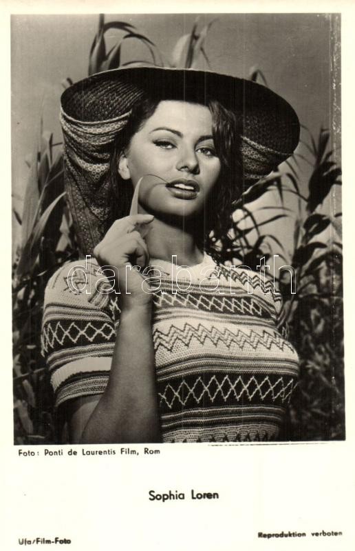 Sophia Loren. Foto Ponti de Laurentis Film https://www.darabanth.com/hu/317-Gyorsarveres/317.0/Kepeslapok/Szinesz~1000078/Sophia-Loren-Foto-Ponti-de-Laurentis-Film~II1747567
