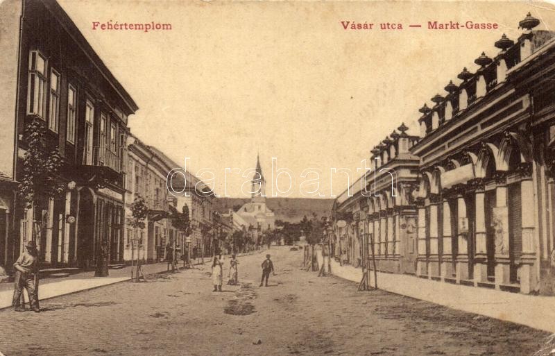 Fehértemplom, Ung. Weisskirchen, Bela Crkva; Vásár utca. W.L. 1166. / ... https://www.darabanth.com/hu/317-Gyorsarveres/317.0/Kepeslapok/Vajdasag~1000009/Fehertemplom-Ung-Weisskirchen-Bela-Crkva-Vasar-utca-WL-1166-Markt-Gasse-street-EK~II1744746