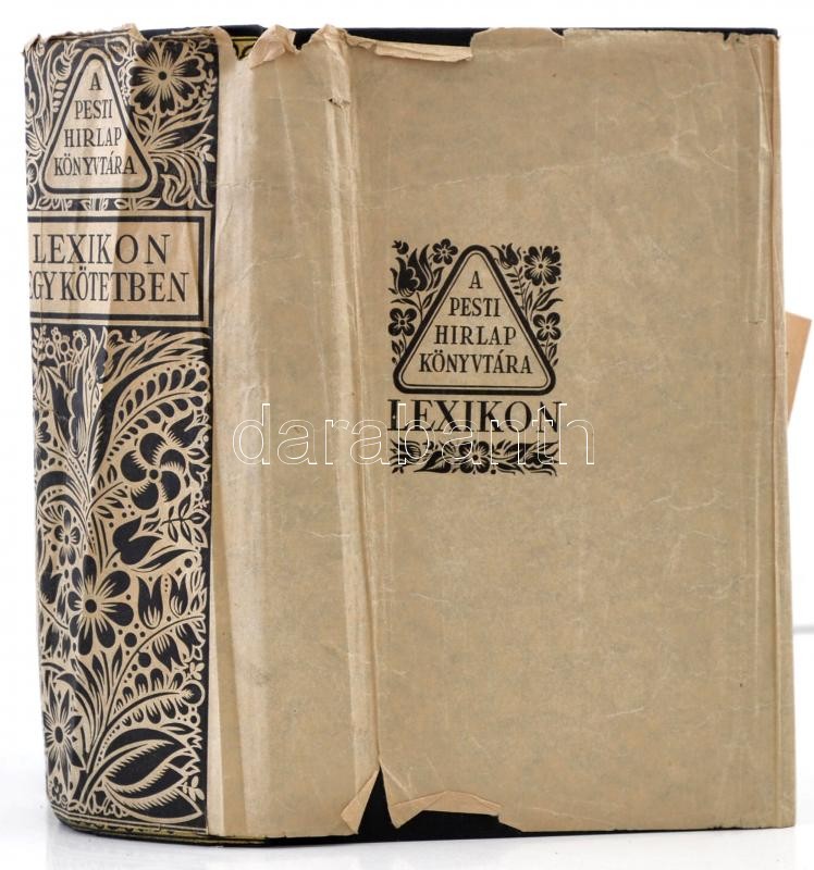 A Pesti Hírlap Lexikona. A mindennapi élet és az összes ismeretek kézikönyve egy kötetben A-Z. Bp., 1937, Pesti Hírlap. Kiadói egészvászon kötésben, kiadói papír védőborítóban, a papír védőborító gyűrött, szakadozott, viseltes, de egyébként jó állapotban.