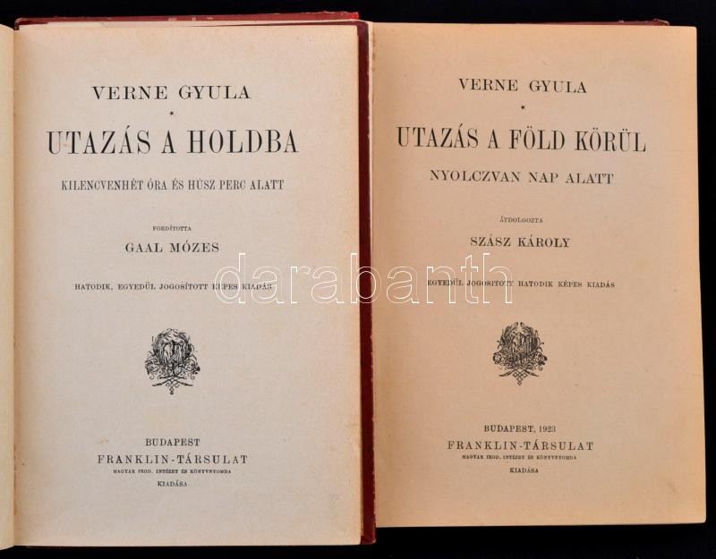 Verne Gyula két könyve: Utazás a Föld körül; Utazás a Holdba. Bp., cca... https://www.darabanth.com/hu/317-Gyorsarveres/317.0/Konyvek/Konyvek-Egyeb-ritkasagok~2500016/Verne-Gyula-ket-konyve-Utazas-a-Fold-korul-Utazas-a-Holdba-Bp-cca-1923-Franklin-Disze~II1741588