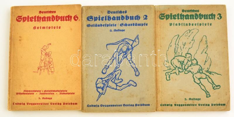 Leírás: Deutsches Spielhandbuch. 1., 2., 6. köt. Potsdam, 1929-1930, Ludwig Voggenreiter. Kissé foltos papírkötésben, egyébként jó állapotban.