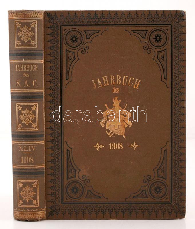 Jahrbuch des Schweizer Alpenclub 1908 Bern, 1909. Schweizer. Alpenclub. Nagyon sok képpel. Aranyozott egészvászon kötésben, szép állapotban / With many illustrations, in full linen binding, in nice condition.