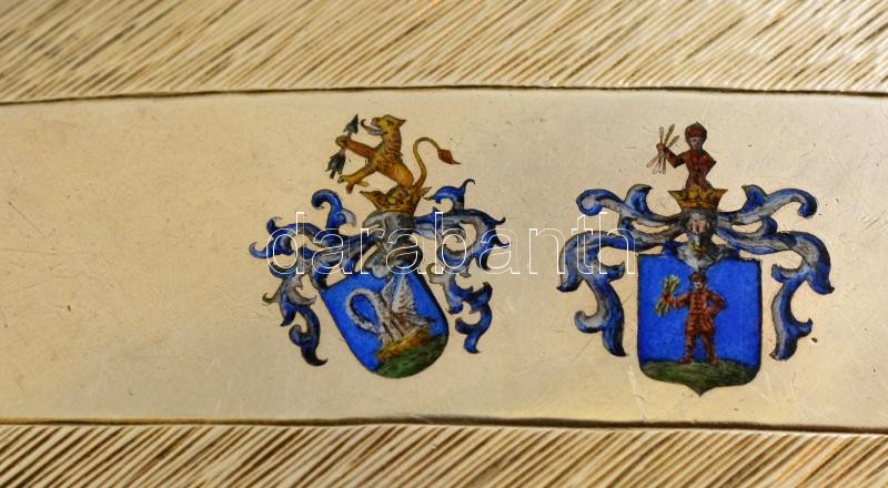 Leírás: Ezüst(Ag) címeres cigarettatárca, jelzett, 7,5x8,5 cm, bruttó: 126,5 g