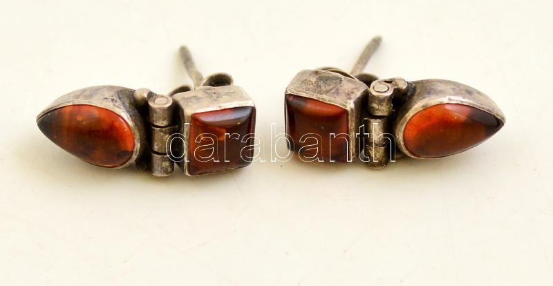 Leírás: Ezüst(Ag) fülbevalópár, borostyánnal, jelzett, h: 1,5 cm, bruttó: 2,4 g
