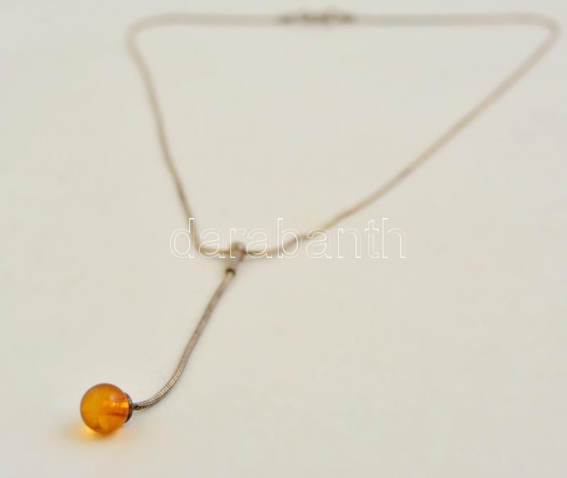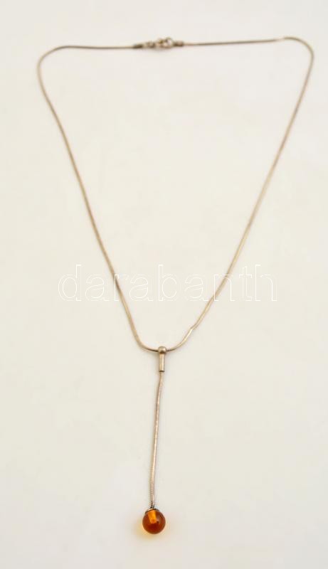 Leírás: Ezüst(Ag) lánc, borostyán dísszel, jelzett, h: 40 cm, bruttó: 2,9 g