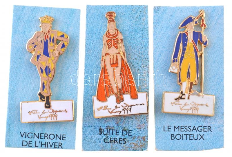 France 1999. 3xdiff enamelled badges: "VIGNERONE DE L'HIVER", "LE MESSAGER BOITEUX" és "SUTIE DE CERES" C:AU