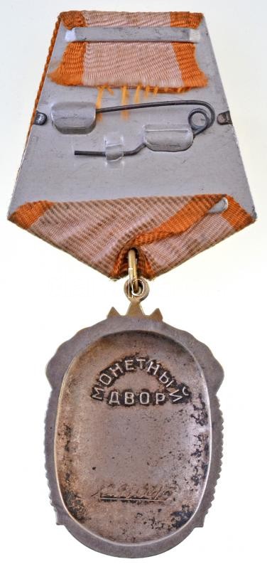 Szovjetunió ~1950-1960. "Becsület Érdemrend" jelzetlen zománcozott Ag kitüntetés mellszalagon, hátoldalán sorszám (50x33mm) T:2