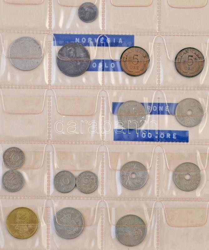 98db-os vegyes külföldi fémpénz tétel albumba rendezve, közte Albánia, Belgium, Dánia, Kína (közte hamis darabokkal) T:vegyes