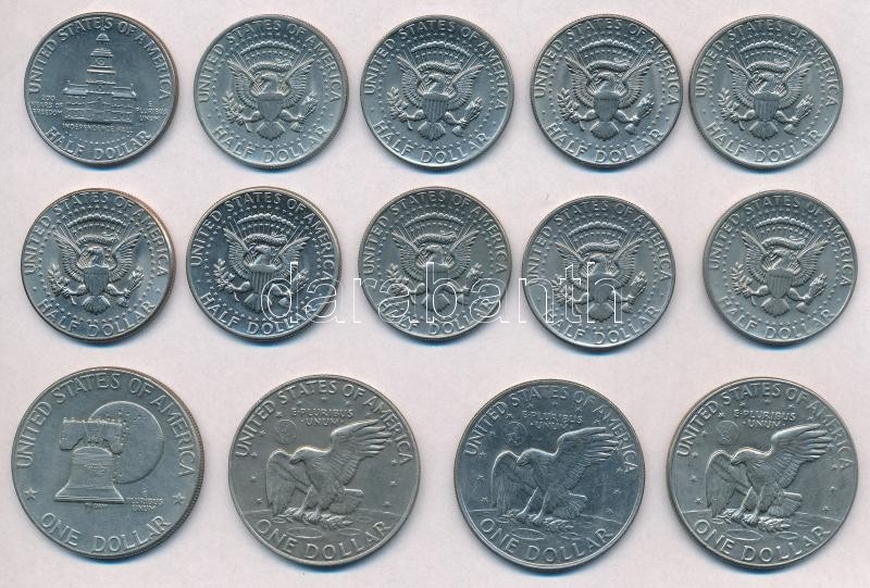 Leírás: Amerikai Egyesült Államok 1971-1986. 1/2$ Cu-Ni "Kennedy" (10xklf) + 1971-1976. 1$ Cu-Ni "Eisenhower" (4xklf) T:2